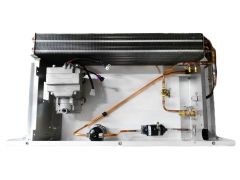 Данная модель холодильного агрегата состоит из двух отдельных частей – конденсатора и испарителя, соединенных между собой гибкими шлангами.